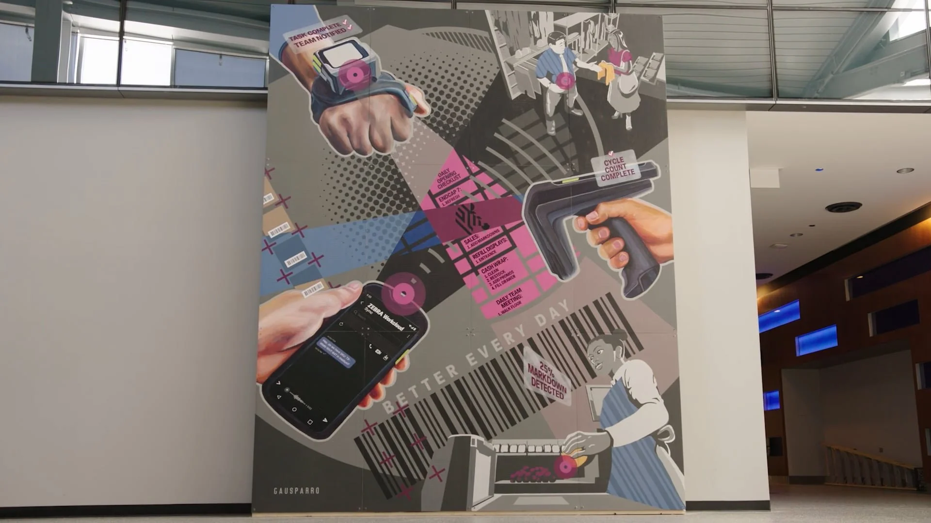 Video produced to start each day of Zebra’s 2025 ZONE customer conference in Nashville. Commissioned and oversaw production of complementary original large-scale art installation mural.